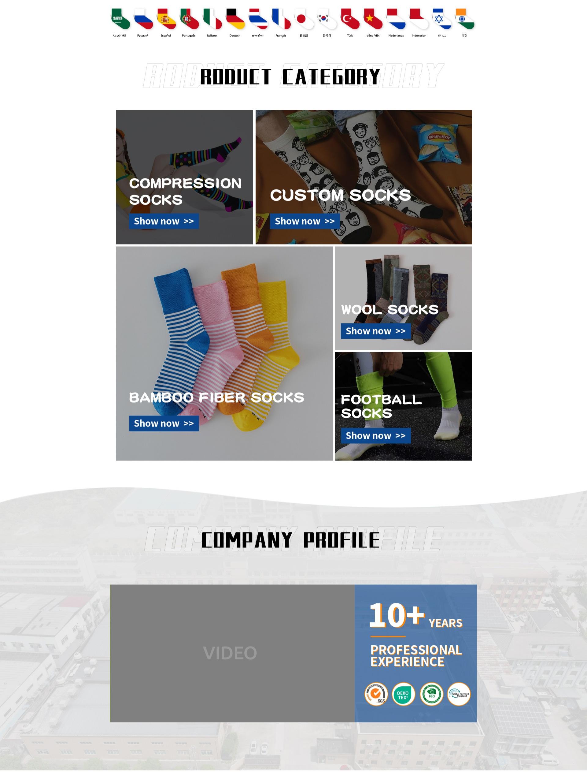 Zhuji Dayin Socks Co.,Ltd is a professional socks manufacturer , which located in socks capital Datang Town Zhuji City, China. It covers and area of more than 4000 square meters.We are specialized in producing a wide variety of socks and pantyhose. We have more than200 sets of knitting machines, and around 100 workers.We have different cylinder and different needles which can meet all kinds of requirements of customers.Our best selling socks is bamboo socks, wool socks, football socks ,trampoline socks and kids socks. Our annual output is more than 40million pairs, they are mainly sold to Europe, USA, South America, The Middle East,Africa and Southeast Asia. Our quality and services are widely praised by customers!Our Factory also have the certification of BSCI,FSC,ISO14001,OEKOTEX STANDARD100 and STEP. If Customer have requirements of the factory audit ,we also welcome and will cooperate to do it.